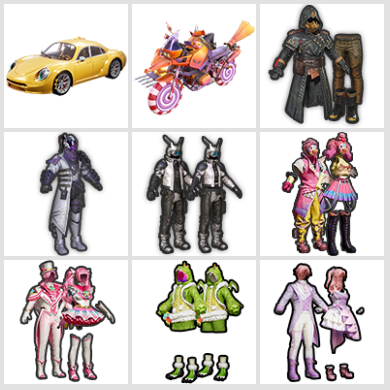 素材号☆金靴子☆赤蝎幽灵☆2载具10粉装10特效枪☆蜘蛛侠☆暗影哥特红口罩☆AKM-百万伏特☆浪漫天命☆猫包