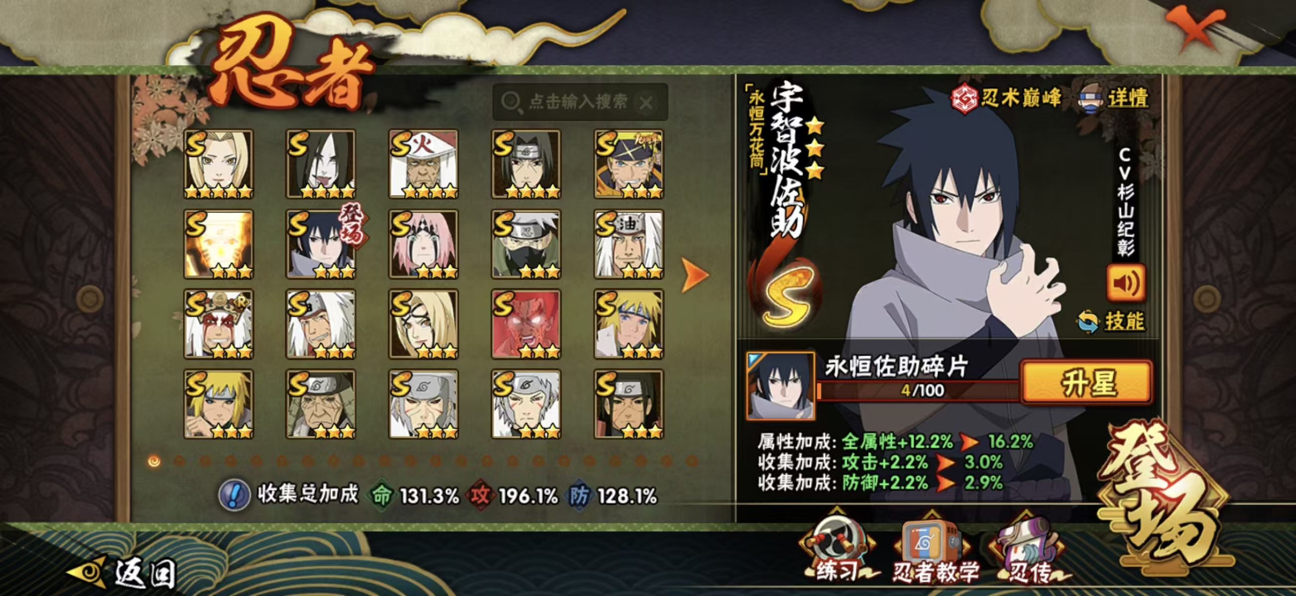 QW376★32S-54A★ 1700W战力 秽土一二三四代火影★第七班★鸡翅佐助★传说自来也★解斑★白面具★忍战...