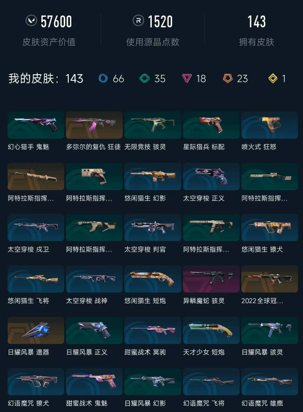 段位:钻石 终极数量:1 传奇数量:23 卓越数量:18 英雄数量:28 维权率限制:40 在线解冻结时间:0:00至24:00 到时不下线:否 分销折扣价:无折扣 分销起租时长:2 排位赛:可排位 出租次数限制:2 武器皮肤数量:143