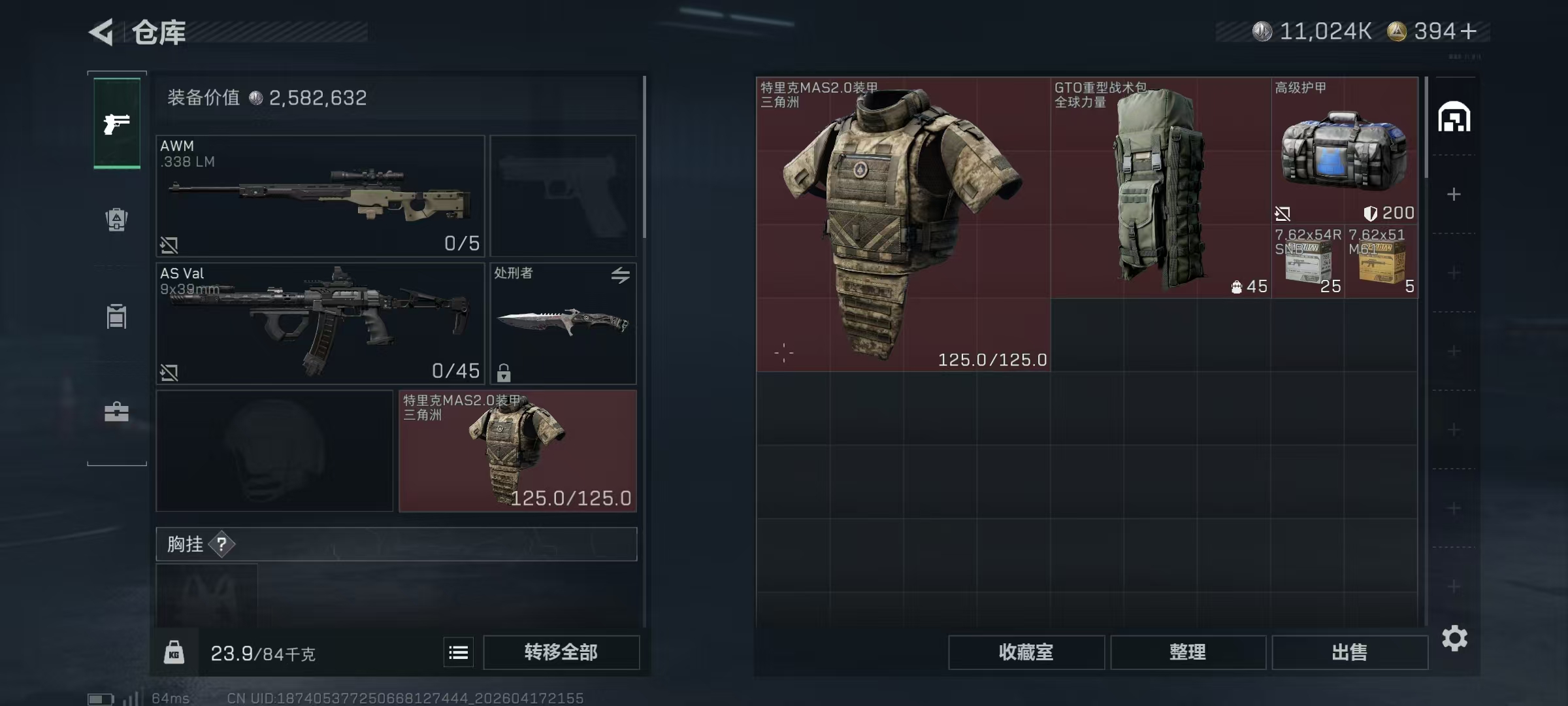 哈夫币比例:10 烽火地带等级:60 全面战场段位:军士长 负重等级:6级 典藏皮肤数:4 哈夫币:11024184 载具皮肤数:26 AWM红弹数量:0 角色名:冥羲绪 六套装备数量:2 烽火地带段位:黑鹰 干员数:12 体力等级:满级 普通皮肤数:183
