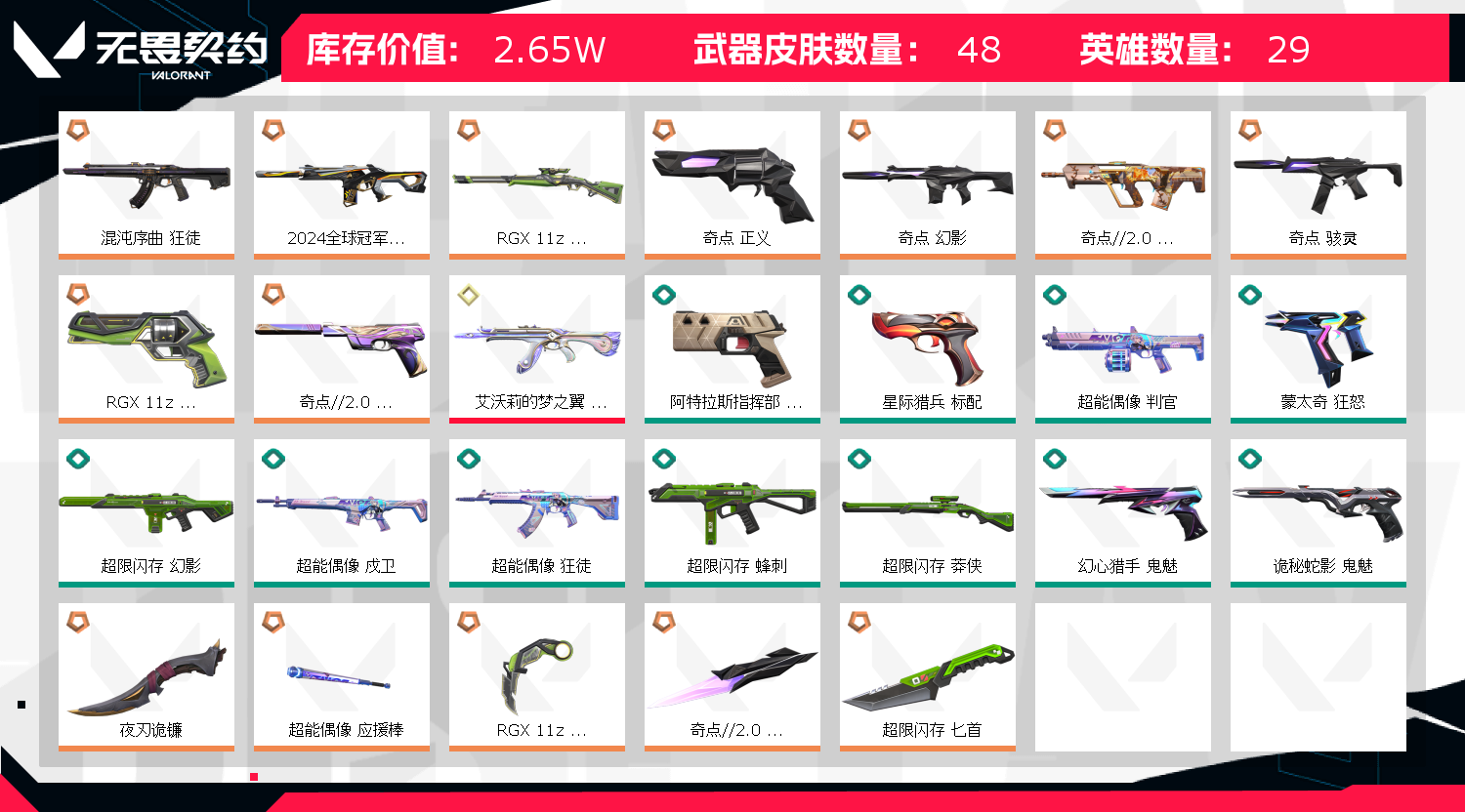段位:铂金 终极数量:1 传奇数量:14 分销起租时长:2 排位赛:可排位 英雄数量:29 在线解冻结时间:0:00至24:00 到时不下线:否 分销折扣价:7折 武器皮肤数量:48